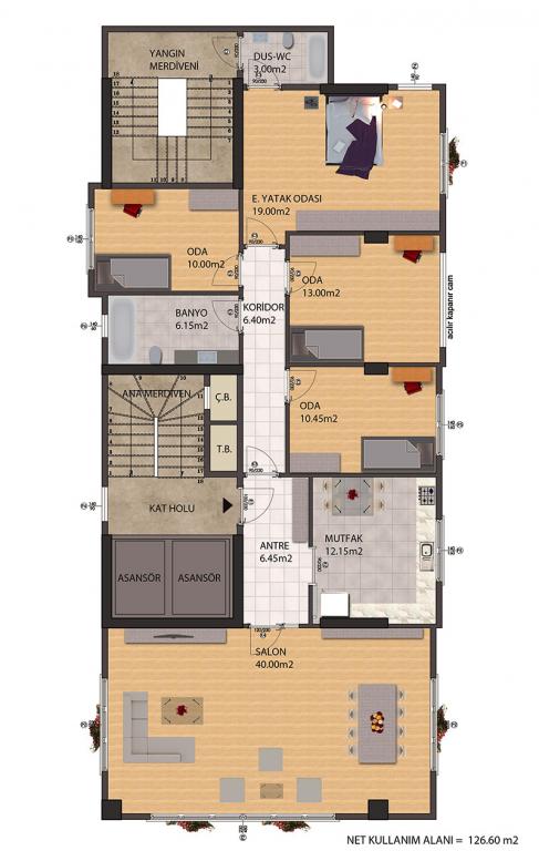 - SALON VE TÜM ODALAR MASİF PARKE