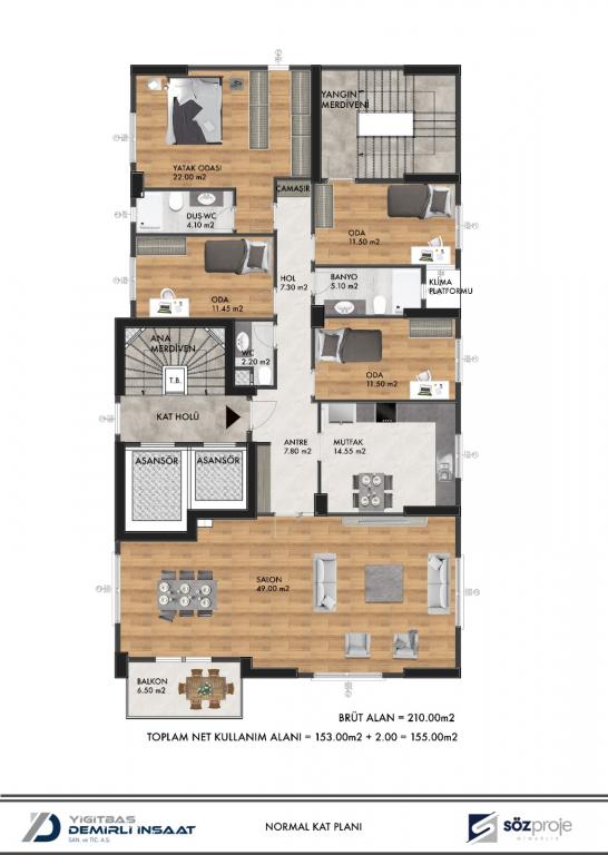 - SALON VE TÜM ODALAR MASİF LAMİNE PARKE
